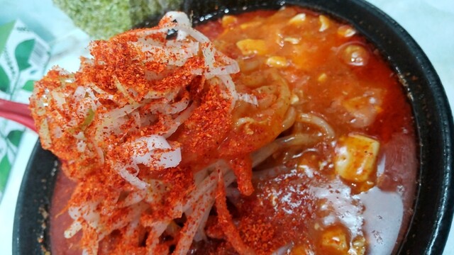 極(きわみ)辛豚汁ラーメン950円(9辛) 厚切りチャーシュートッピング(ポイントサービス) ライス130円