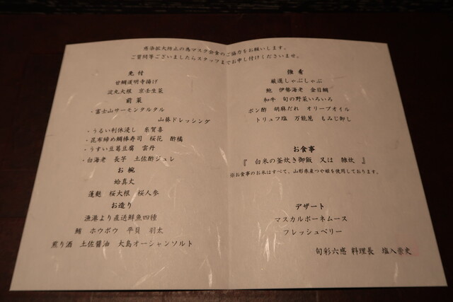 相方との九州遠征で、約2ヶ月前に電話予約。現地到着は日曜18:00前。わらわらと客が集まり、看板前で写真を撮ったりしている。時間となり、中からスタッフが出てきて、暖簾がかかり入店。案内された2人掛けテ...