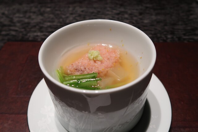 河津桜を目当てに宿泊。チェックイン開始30分後くらいには着いたのだが、夕食や朝食時間、貸切風呂の予約は、すでに選択権がほぼない。常連さん方で既に占められている模様。ゆっくり桜を眺めて散歩し、ほぼ一人で露天風呂に浸かり、いよいよ夕食。手入れされた庭がよく見える、大きな窓際の席。お酒はマリアージュを依頼(@¥5,500)。後でわかったのだが、マリアージュは日本酒が主体であり、日本酒の方が美味しい。