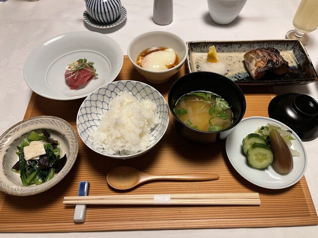 翌朝の朝食は、まず和洋どちらか、次に和は、メインをサーロインか魚かの選択。和で両方をお願いしたが、どちらも美味しかった。この日のサワラは特に良かったかな。朝も適度な量が満足感を高める。