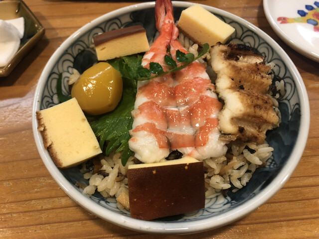 アオリイカにも一手間加えられていて、柚子?の風味もよく効いて美味しくいただきました。また、寿司の最後はこちらではお初のちらし寿司♪ 海老に穴子、玉子、またお正月らしく甘栗がオンされていました。