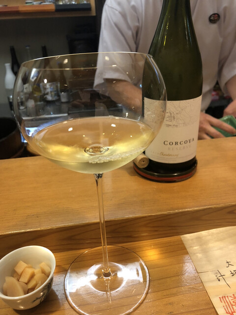 女将さんのワインのチョイスが毎度いいので、こちらでは白の頻度が高し♪ シャルドネのスッキリをまずはいただきました。アテの鯛ともよく合っています!アテが一通り終わったらシースー(大将が毎度こう言われます笑)の開始。