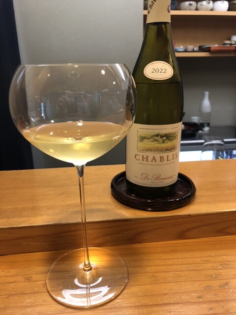 日本酒の後はさらに白にチェンジです。シャブリからいただきます♪ こちらのお店は料理ももちろんですが、大将のトークや女将さんのお心遣いにいつも癒されるんですよね。