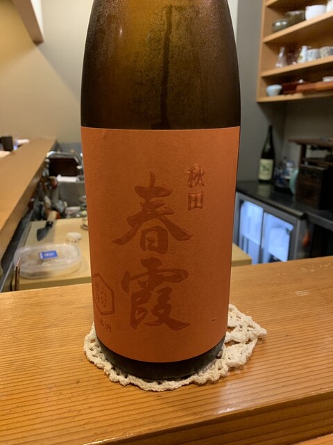 鮑は氷塩水に浸した状態で、コリコリな歯ごたえがクセになりそうです( ^∀^) ビールは早々に空いてしまい日本酒にチェンジ。秋田のお酒、春霞をいただきます♪