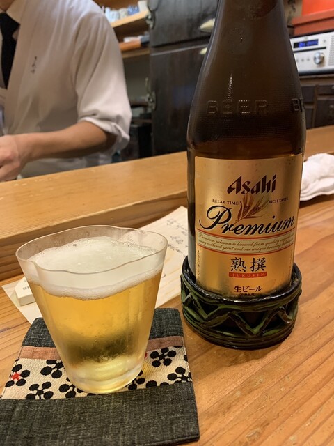 少し間が空いてしまいましたが、およそ1年ぶりにお気に入りなこちらのお店を訪問です♪ 数日前から楽しみで楽しみで( ^∀^) 大将と女将さんにご挨拶をしてまずはビールで乾杯♪