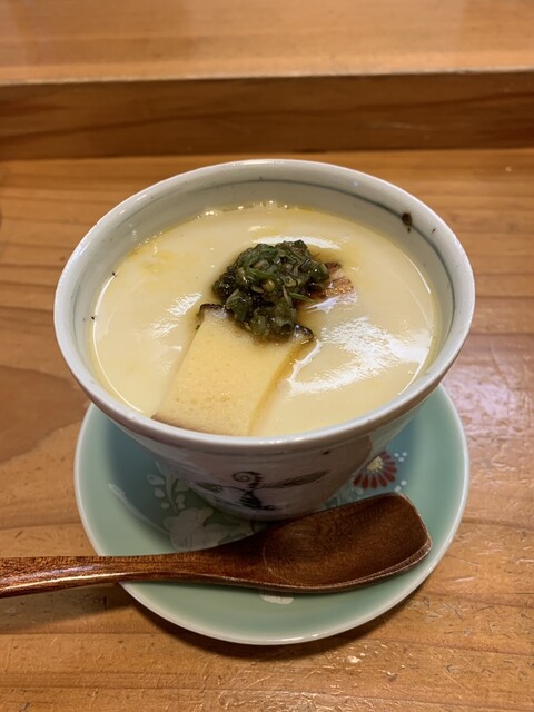 牡蠣に続いててっさに鮑、あん肝と続きます。てっさも身が締まって美味しいですね♪ 鮑も柔らかくて味がよくしゅんでいて◎。お待ちかねの茶碗蒸しも登場( ^∀^)