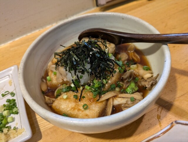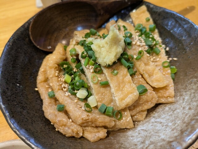 前回鶏天のツマミ頼んだらけっこう量が多かったので締めのうどんでトッピングにしました