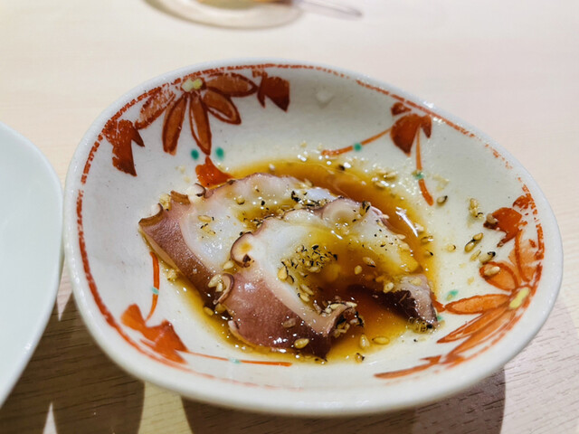 また、特に感動したのが、先付けのたこの炙りのポン酢かけ。