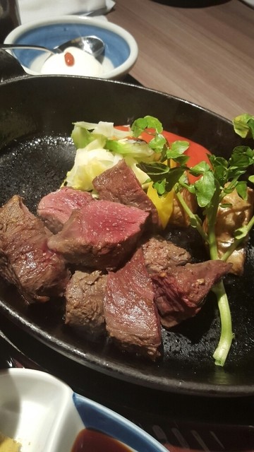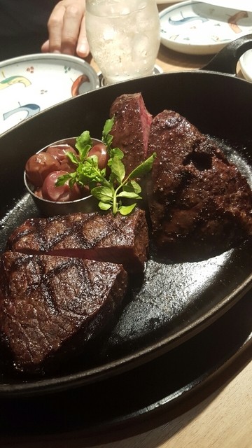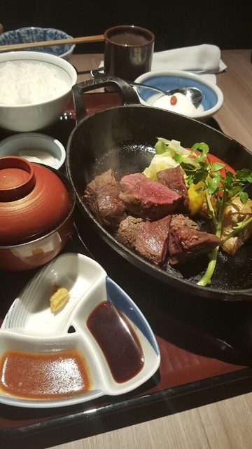 がっ!これが美味しいではありませんか。200グラムで1,200円税込みならば、どちらかのグラム6円のステーキだけとは比べ物にはならなく、ご飯も付きサラダも付き、お新香、デザートまでお肉の付け合わせの野菜もきれいで種類も豊富にあり美味しかったですし、帰りにはコーヒーまで…