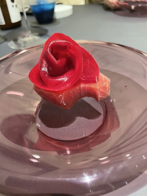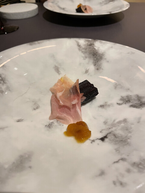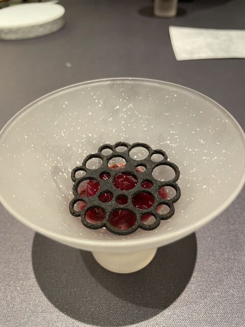 本日のコースはサプライズ4皿を加えて24皿、3時間。どれも感動的でしたが特に印象的なものは下記◎