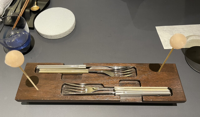 1ヶ月以上前に予約して、やっと2回目の訪問が実現。今夜のメニューは、サプライズも入れて23皿。順番に、