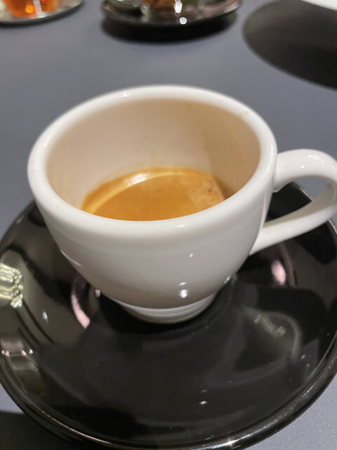 ◎ブラックサンダー 栗とフォアグラのムース エスプレッソソース(栗のムースとエスプレッソにフォアグラの脂でチョコの様な味わい。料理とデザートの中間くらいだかギリギリ料理になっている絶妙な一品)