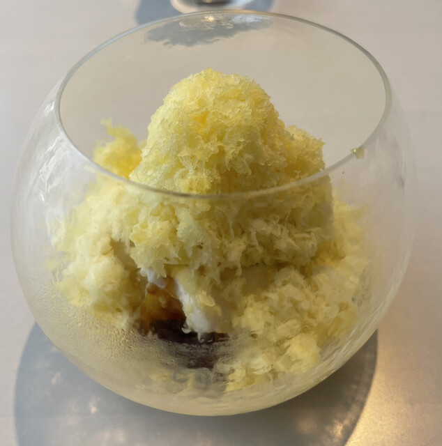ブラッドオレンジをゼラチン寄せやアイス、かき氷等様々な形にして混ぜ合わせた手の混んだ一品。爽やかながら味わい深い。メニューを見た時になーんだと思った自分がアホだったなと思うくらいの完成度に感動。