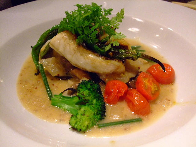 スズキのソテーきゅうりとトマトのオイリーソース