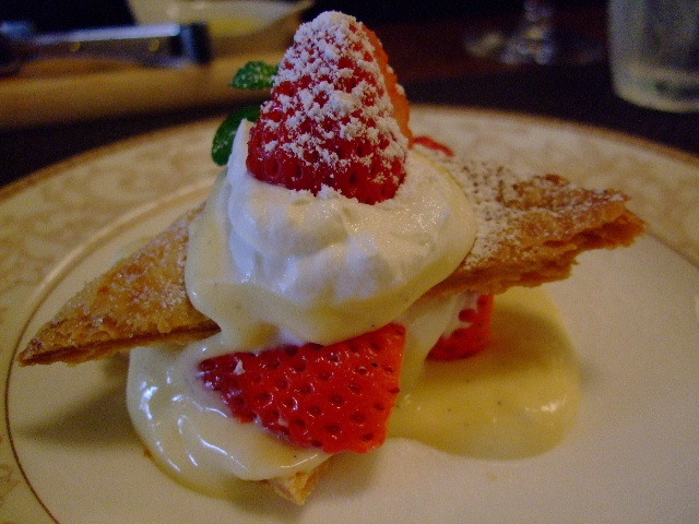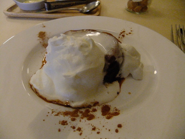その上の 熱々のおりんごにつめたい生クリームが 添えられてて