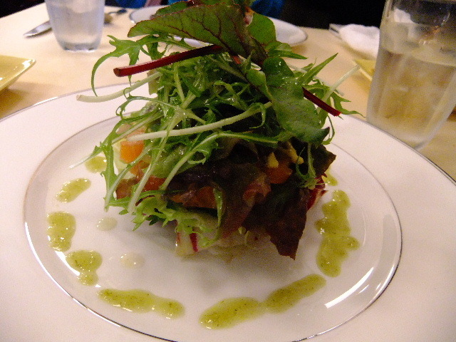 てんこ盛りのサラダの下には 厚切りサーモンが 隠れてます