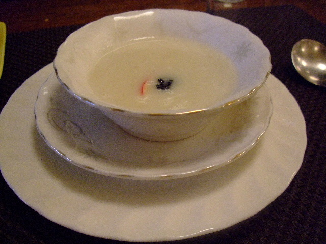 赤い 聖護院かぶらがアクセントの カリフラワーのスープ