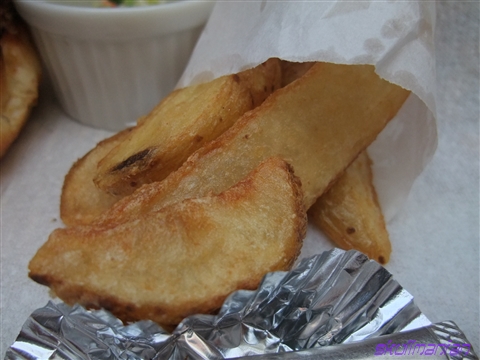 衣はなく、ウェッジカットでしっかりと揚げられています