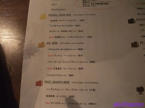 その日のビールメニュー