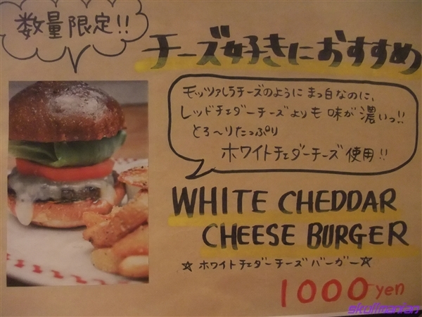 これまたチーズ推しの、チェダーより濃厚なホワイトチェダーチーズバーガー