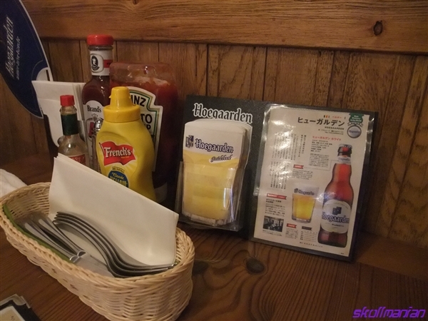 卓上カトラリーにはナイフとフォークがスタンバイ、ハインツケチャップにフレンチマスタード