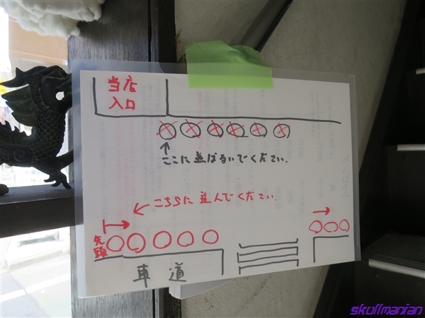 開店は11:30分、入り口の階下に並び方の御案内