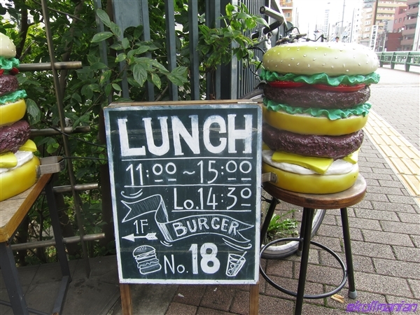 バーガー屋さんには定番のバーガーオブジェがお出迎えですよ
