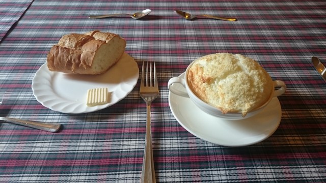 この日のオードブルはお肉のパテとサーモン、サザエのグラタンのようなもの(名前が分かりません)でした。スープ(コンソメ)はパイのような蓋がしてありますが、パイではなく山芋(多分)入りのメレンゲを焼いたようなものです。焼き色がついていますがフワフワなので、スプーンですくって食べることができます。トロッとした食感と山芋風味の豊かな味わいで、いつ食べても美味しいです。魚料理は蒸した鯛にソースが挟んである(何のソースか忘れました!)のとオマールエビの爪でした。緑のアスパラとブロッコリーで見た目もきれいです。肉料理は御馴染みのビーフシチューで、昼のコースより少し多めの肉になっていました。ここのビーフシチュー本当に美味しいです。ドロッとしたデミグラスソースに牛肉がゴロッと入ったシチューはよく見ますが、このビーフシチューはお肉にソースがサラッとかかっている感じで、牛肉のしつこさがないんです。30年以上前に元町にあった東亜グリルさんのビーフシチューに似ています。当時東亜グリルで食べたビーフシチューが、あまりにも衝撃的で美味しかったので、しばらくしてまた訪問したらもうお店はもう閉店していたんです。懐かしさも加わってさらに美味しく感じるのかも知れません。デザートもボリュームがあり、満腹になりました。これからも行きたいお店ですが、結構お年を召されているようなので、東亜グリルのようにいつお店を閉められるか心配です。できるだけ長く続けていただきたいお店です。ご馳走様でした。ご夫婦お二人で切り盛りされているので、必ず予約を入れることが必要です。