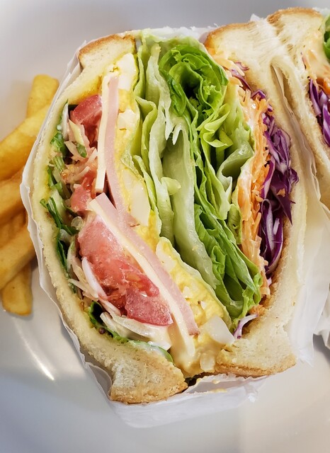 おそらく定番メニューだと思われるミックスサンドは、注文してから作って頂いたのだが、かなりのボリューミーさで食べごたえが有って野菜もしっかり採る事が出来るのでお勧め。