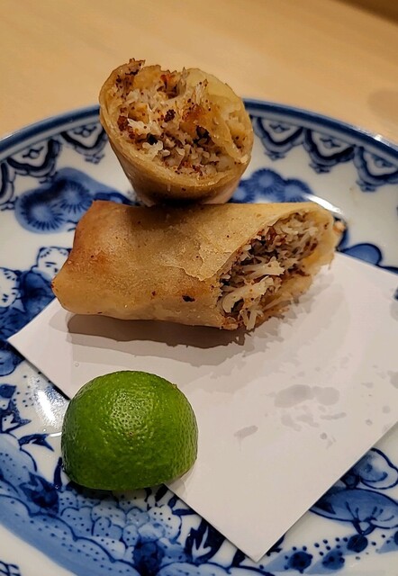 香箱蟹は茶碗蒸しや春巻、握りにも仕立てて提供。どれも丁寧な味わいで満足度が実に高い。