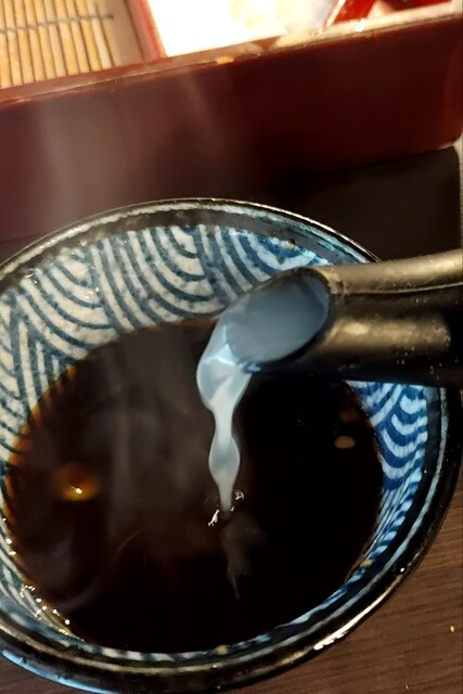 蕎麦は硬めで腰のある細麺です。ツユは濃いめなので蕎麦は三分の一くらいつけて啜ります。