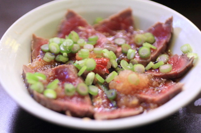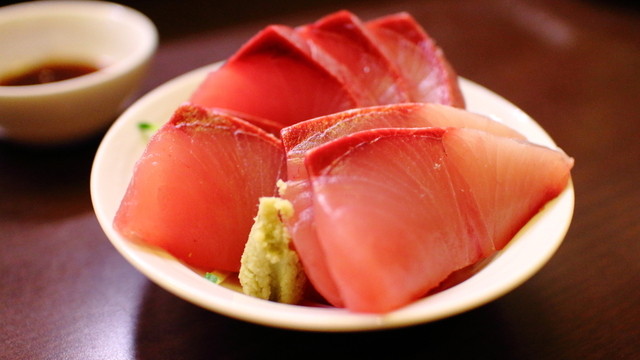 ぶりの刺身、サバの唐揚げ、マグロ、貝類、牛肉のタタキどれも美味しかった。