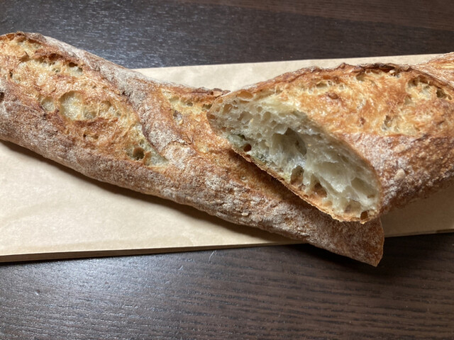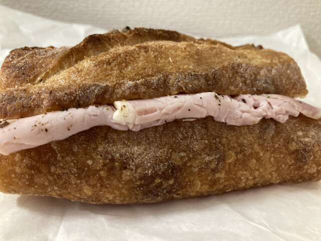 チコリ根ローストを生地に練り込んだフランスパンに、ペッパー入りミルククリームが挟みこまれています。