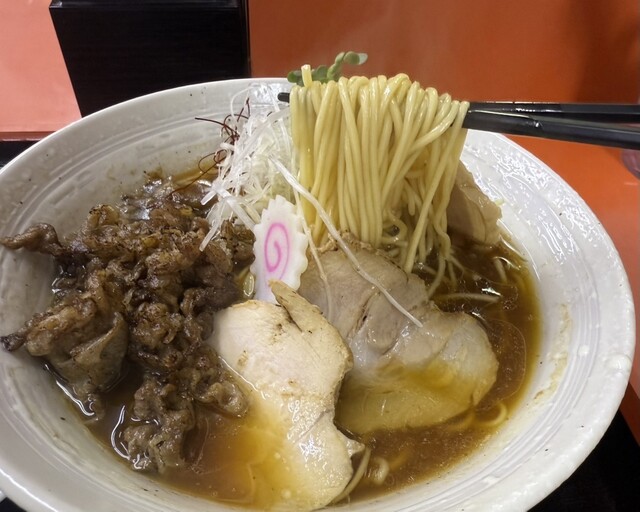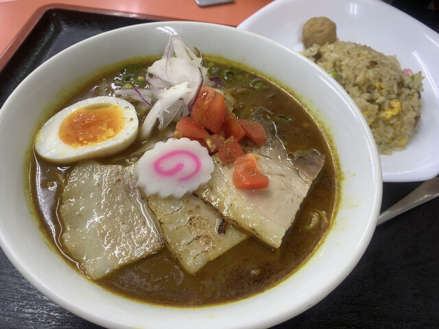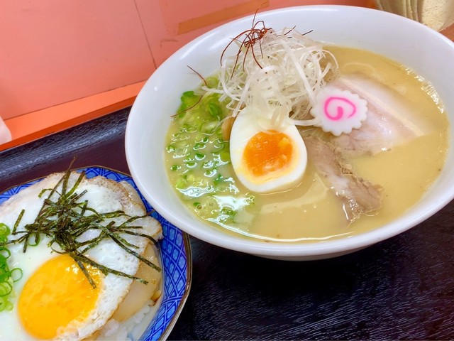 巴清湯とありチャーハンセットでお願いした。巴て何?。心静かに待ちます。同時に来た(グッド)。肉と普通のチャーシューがのったビジュアル。肉の旨みとスープ 麺 チャーシュー全てウマかった。巴清湯えーな。それとチャーハンがウマくなってる。これなら大盛りチャーハンにして合わせてもいい。添えられてた唐揚げ消えとるけどw。しかしこれだけ色んなラーメンだしてくる店主ホンマただもんやないで