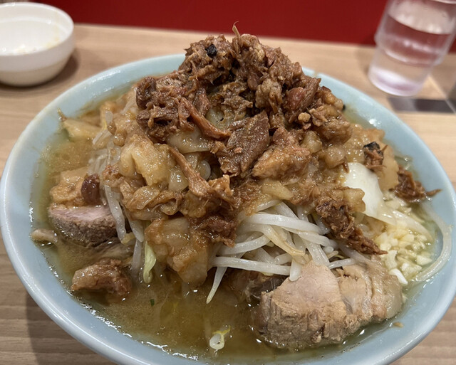 ラーメン半分全マシほぐし豚ブルギニオンバター