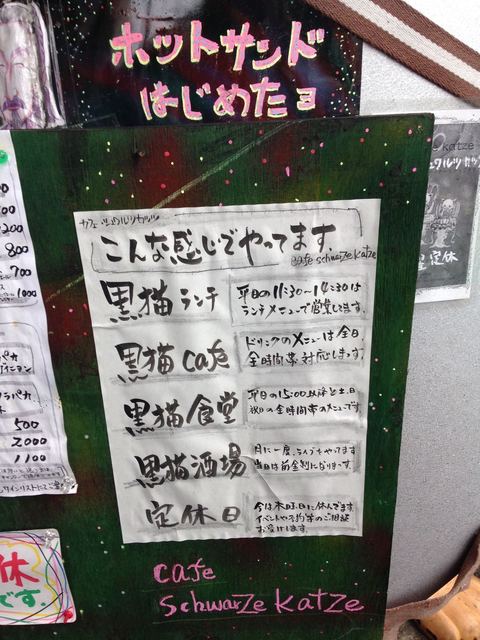 一応、土日、シュワルツカッツは10月1日以降も営業しており、メニューも同じようなものを出していますが、味は残念ながら素人の暇つぶしのようなもので、お金を払ってまで食べたいと感じたものはありません。週末だけ子供のために料理する旦那の料理レベル。自分で調理した方が間違いなくうまいなあ。残念!