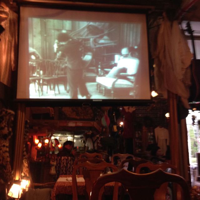 チャップリンのモノクロ映画がやっていたり、アンティークの黒猫ランプがかわいかったり、
