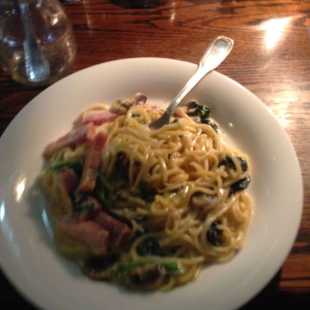 カルボナーラを頼んだら以前とは全く違う、スープ・イン・スパゲッティーのようなものに代わり、この店の”濃縮した旨味”がなくなっていたのは残念。しかも、以前の生麺とは違い、麺も平凡な味に劣化。