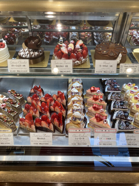 いつ行ってもたくさんのケーキがショーケースに並んでいて選ぶのが一苦労。