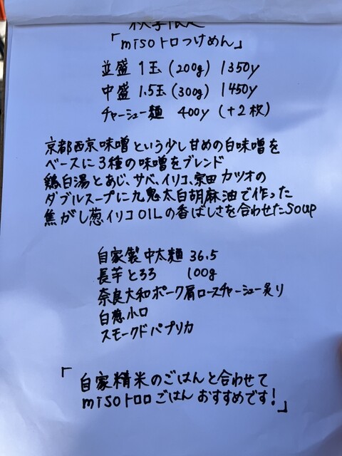 ◎秋季限定misoトロつけめん中盛¥1,450チャーシュー麺¥400