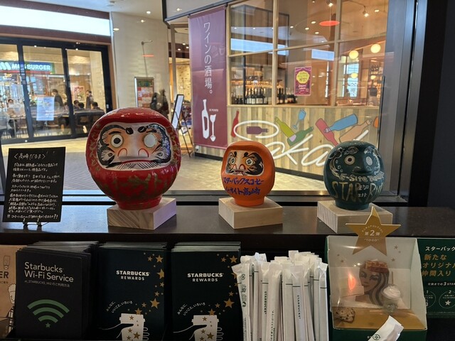 スタバにかかるとだるまもおしゃれに見える。隣のフードコートは少しザワザワしてたが、スタバは落ち着いていてよかった。レジからドリンクを受け取るところまでの動線が少し狭いと感じた。その他飲み物は問題なし。