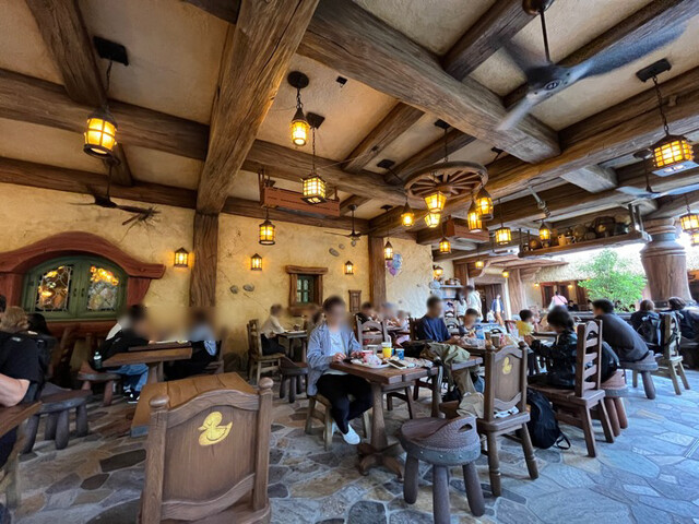 レストランは、ディズニーシーのファンタジースプリングスの中にあります。事前にモバイルオーダーをするのが基本のようで、注文を済ませておいたおかげで、待つことなくスムーズに受け取ることができました。もちろん、リゾート地ということもあり、コストパはそれなりで、ハンバーガーの味は、他にも美味しいハンバーガーショップはあるので、そこまでではないです。