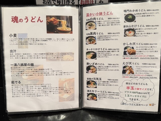 茹でたての釜揚げ麺に生卵を絡め、出汁と一緒に味わうスタイル。釜玉とは違い出汁が張られているので、卵のまろやかさと出汁の旨みが同時に楽しめます。うどんは少し太め、コシは強すぎずちょうどいい食べ応え。出汁はしっかり濃いめで、口に広がる旨みが心地よく、食べ進めるほど馴染んでくる感じです。天かすと大根おろしも入っていて、みんなが組み合わさった味は、絶妙なバランスの美味しさを作り出しています。
