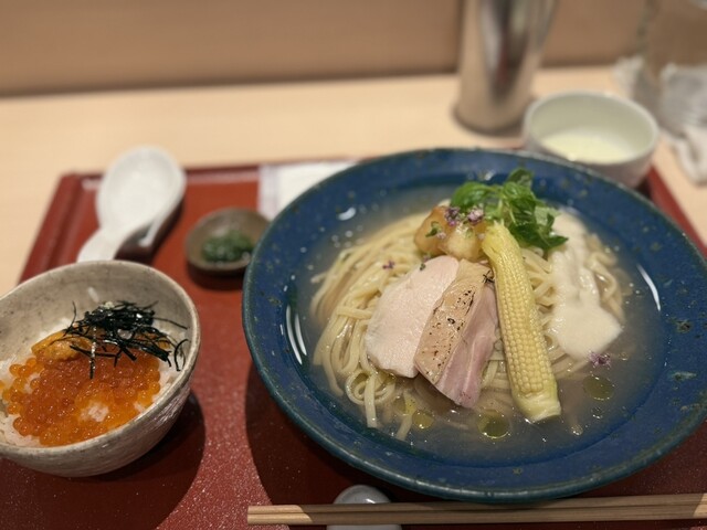朝採れホワイトコーンと麺助鶏のつけそば