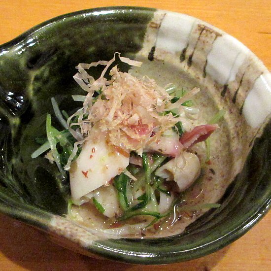お通しはイカと水菜の梅酢和えでさっぱりと頂けた。