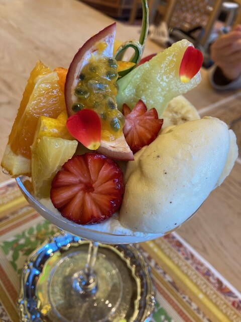食後だったのでフルーツパフェ(2500円税込)を注文。