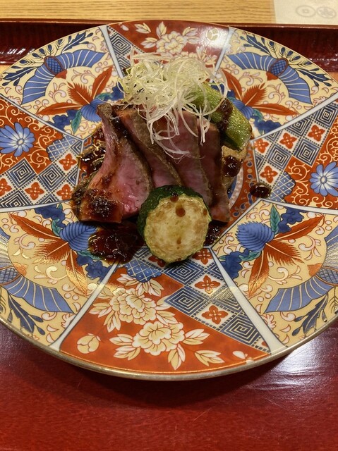 お肉料理…佐賀牛のモモ肉ローストビーフ(味付けが和風でこれまた美味)