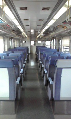 車内は4人向かい合わせのボックスシートから、転換式の2人用の座席に