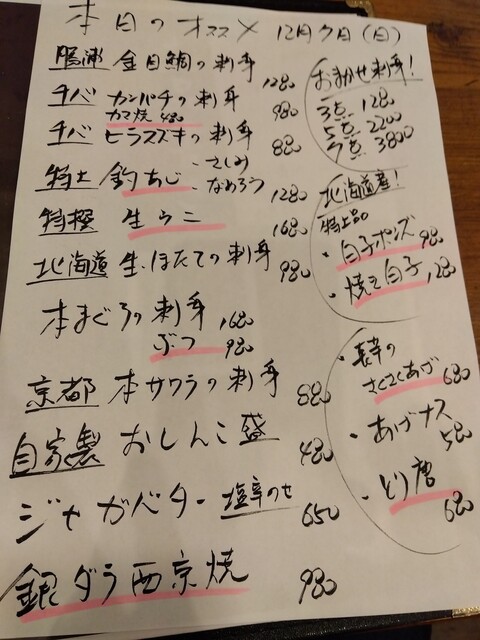 メニュー(2025年12月7日撮影)