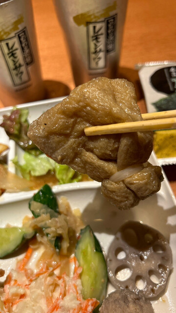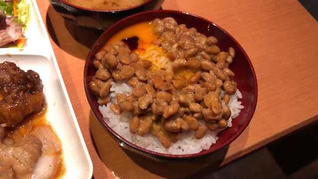 ちょこちょこっとおかずを取りライスに納豆、生卵、韓国海苔で食べ始めましたが料理がなかなか旨いです。